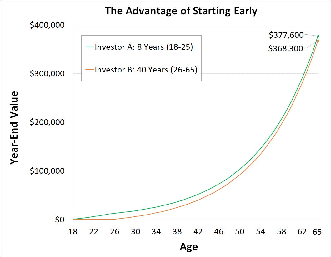 A brief visual example of the power of starting early